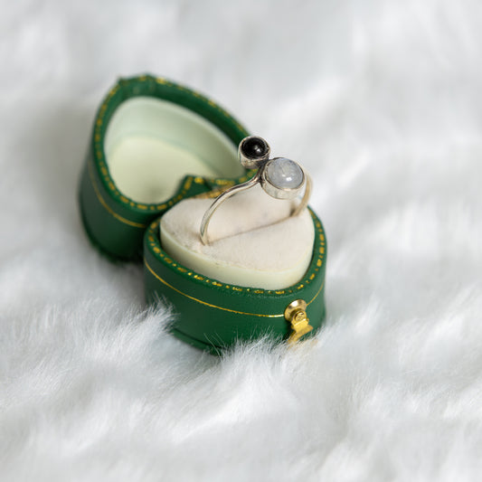Sterling Silver Moonstone Obsidian Ring Size T